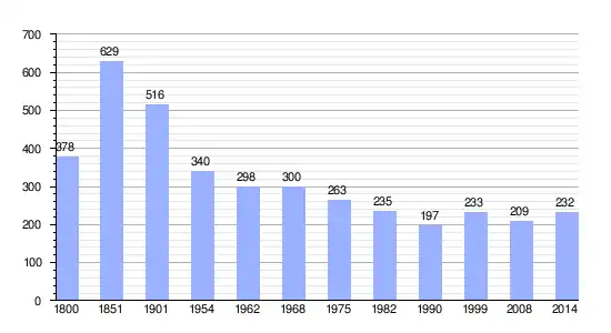 Los datos demográficos contemplados en este gráfico de la comuna de Marchainville[4] se han cogido de 1800 a 1999 de la página francesa EHESS/Cassini, y los demás datos de la página del INSEE.[5]