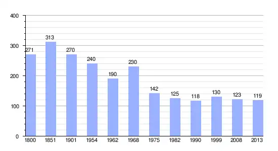 Los datos demográficos contemplados en este gráfico de la comuna de Marchais-Beton[4] se han cogido de 1800 a 1999 de la página francesa EHESS/Cassini, y los demás datos de la página del INSEE.[5]