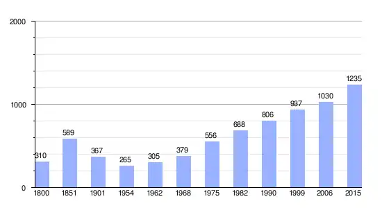 Los datos demográficos contemplados en este gráfico de la comuna de Marchaux[4]se han cogido de 1800 a 1999 de la página francesa EHESS/Cassini, y los demás datos de la página del INSEE.[5]