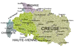 La Marche ha dado nacimiento principalmente al departamento de Creuse y a una parte del departamento de Haute-Vienne (Bellac).