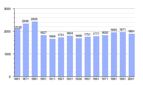 Gráfica de evolución demográfica de Marciana Marina entre 1861 y 2001 |