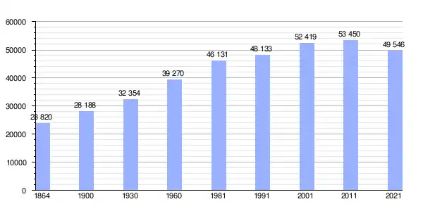 Gráfica de evolución demográfica de Marco de Canaveses entre 1864 y 2021 |