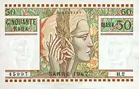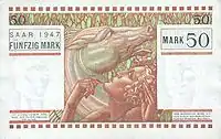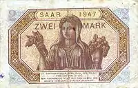El marco del Sarre fue una moneda alemana, creada para sustituir al Reichsmark. Fue puesta en circulación en el año 1947 por un corto tiempo, ya que fue sacada de la circulación en 1949. La moneda circuló en el entonces autónomo Sarre. Tuvo paridad con el marco alemán. No se han emitido monedas para esta unidad monetaria.