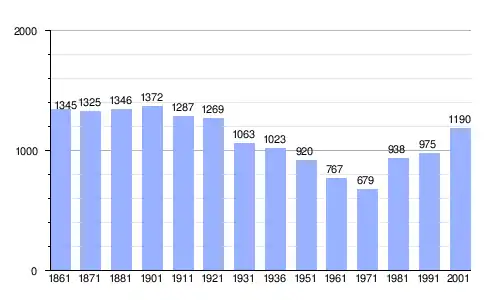 Gráfica de evolución demográfica de Marentino entre 1861 y 2001 |