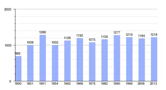 Los datos demográficos contemplados en este gráfico de la comuna de Mareuil-sur-Ay[4] se han cogido de 1800 a 1999 de la página francesa EHESS/Cassini, y los demás datos de la página del INSEE.[5]