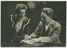 "En vista del proyecto de ley de reforma prometido por el Gobierno, esta Conferencia exige que la inclusión de la mujer [en el sufragio ampliado] se... convierta en una parte vital de la medida gubernamental, y declara además que cualquier intento de excluir a la mujer se enfrentará a la oposición inflexible de los trabajadores organizados a todo el proyecto de ley". —(Resolución de WLL a la Conferencia del Partido Laborista, 1909. En la conferencia, Bondfield aceptó la eliminación de las últimas cuatro palabras.)[49] |