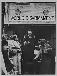 Como la militancia sufragista había desaparecido en gran medida tras el estallido de la Primera Guerra Mundial, en octubre de 1916 se convocó una Conferencia de Oradores,[lower-alpha 9] para considerar la cuestión de la franquicia de las mujeres y hacer propuestas para la legislación de la posguerra. Aunque Bondfield, Lansbury y otros defensores de la preguerra presionaron por el sufragio universal de los adultos,[77][78] la conferencia recomendó únicamente una extensión limitada de la franquicia. La posterior Representation of the People Act 1918, otorgó el voto a las mujeres mayores de 30 años que fueran propietarias o esposas de propietarios, o que fueran graduadas universitarias.[79] Bondfield describió la Ley, que excluía a casi todas las mujeres de la clase trabajadora, como «mezquina e inadecuada... creando nuevas anomalías».[80]