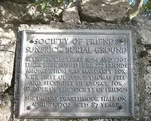 A finales de junio de 1652, George Fox visitó Swarthmoor Hall. Margaret Fell más tarde escribió que «nos abrió un libro que nunca habíamos leído, ni de hecho nunca oímos que fuera nuestro deber leerlo la Light of Christ (Luz de Cristo).»[3] Un día o dos más tarde realizó una conferencia en la iglesia parroquial, donde se había invitado a Fox a que acudiera con ellos; después del canto religioso hizo una predicación. Durante las semanas próximas ella y muchos de su casa fueron convencidos por sus creencias.[4] En los siguientes seis años, Swarthmoor Hall se convirtió en un centro de la actividad cuáquera; servía como un secretariado oficioso para el nuevo movimiento, recibiendo y enviando cartas de misioneros ambulantes y, ocasionalmente, teniendo lugar predicaciones de Fox, Richard Hubberthorne, James Naylor, y otros. Fell escribió muchas epístolas y donó fondos para las misiones. Tras la muerte de su marido en 1658, siguió siendo señora de Swarthmoor Hall; la casa quedó como sitio de reunión, aunque en 1660 fue allanada por las fuerzas del gobierno.