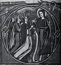 ![]() Haakon IV, Margarita y su hijo Haakon V. Imagen de un salterio de Margarita. | ||
