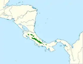 Esta especie es endémica de las cordilleras de Costa Rica y el centro oeste de Panamá.[5]