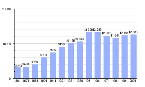 Gráfica de evolución demográfica de Margherita di Savoia entre 1861 y 2001
