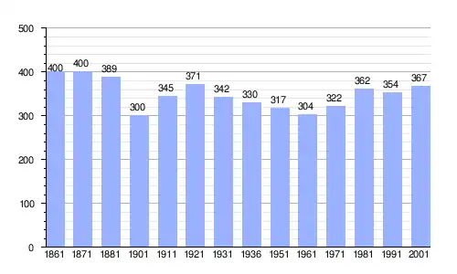 Gráfica de evolución demográfica de Margno entre 1861 y 2001 |