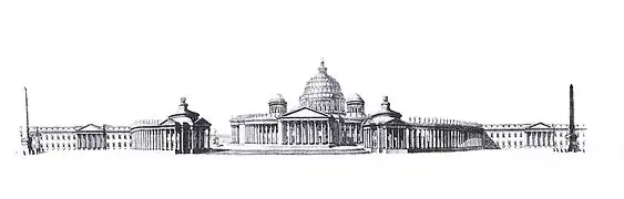 Marie-Joseph Peyre es el autor de un notable proyecto catedralicio con dos palacios en 1753 o 1754 presentado al concurso clementino de la Academia de San Lucca.[3][4]