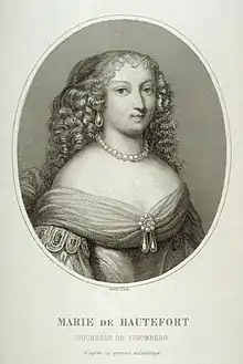 Marie de Hautefort (1616-1691) fue una cortesana francesa. Sirvió como dama de compañía de Ana de Austria, además de ser confidente y consejera del rey Luis XIII de Francia.