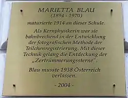 ![]() Placa conmemorativa de Marietta Blau en la Rahlgasse | ||