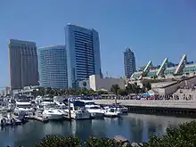 Marina de San Diego, al fondo con los Hoteles Mariott y el centro de Convenciones.