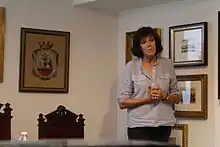 ![]() Marina Picazo en una conferencia en la Real Academia de Nobles Artes de Antequera. | ||