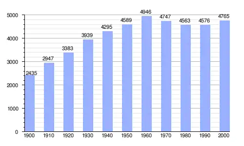 Gráfica de evolución demográfica de Marina de Cudeyo entre 1900 y 2000 |