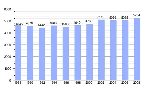 Gráfica de evolución demográfica de Marina de Cudeyo entre 1988 y 2008 |