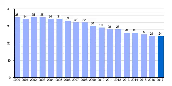 Gráfica de evolución demográfica de Marinda[1] entre 2000 y 2017