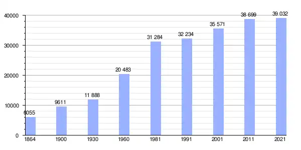 Gráfica de evolución demográfica de Marinha Grande entre 1864 y 2021 |