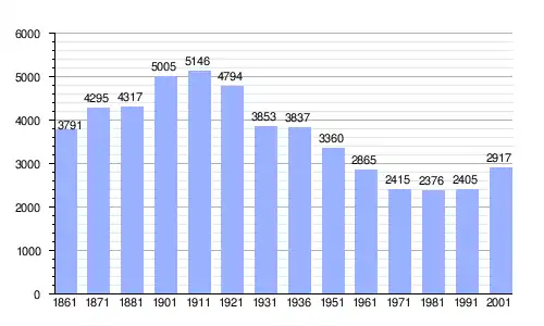 Gráfica de evolución demográfica de Marliana entre 1861 y 2001 |