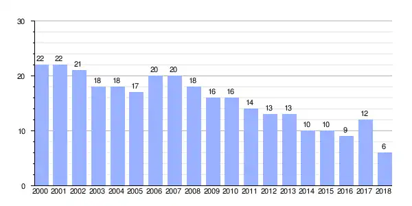 Gráfica de evolución demográfica de Maroxo de Arriba entre 2000 y 2018 |