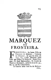 El título de Marqués de Fronteira (Marquês de Fronteira, por la frontera entre Portugal y España) pertenece a la nobleza de Portugal. Fue atribuido por carta de Alfonso VI de Portugal de 7 de enero de 1670 a D. João de Mascarenhas, 2.º Conde da Torre, como recompensa por sus hechos militares en la Guerra de Restauración portuguesa (1640-1668) y por haber apoyado a D. Pedro II contra Alfonso VI en 1667-1668.
