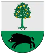 Angolotti: En plata una manzano de sinople, frutado de oro; cortado de sinople, con un jabalí de sable.[3]