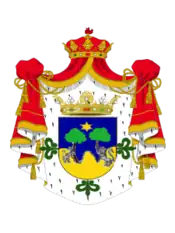 ![]() Armas: tres montes de oro que forman dos valles: en el centro de cada valle un pino de su color, con un león de oro con ademán de subir por el tronco: a lo alto del escudo una estrella del mismo metal: campo azul[1] | ||