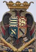 ![]() Escudo del Marquesado de Torremejía, en el retablo mayor de la Iglesia parroquial de San Bartolomé de Valenzuela de Calatrava | ||