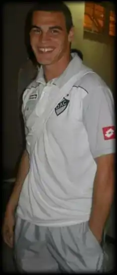 Se ha ganado el apodo de "Tanque" en su paso por el ascenso argentino debido a su gran porte físico y también es conocido como "El Látigo" por la potencia en su pegada característica que demostró en Quilmes Atlético Club de la Primera División Argentina. Este zurdo centrodelantero es el jugador más joven en disputar las cinco categorías del Fútbol Argentino con tan sólo 23 años de edad.