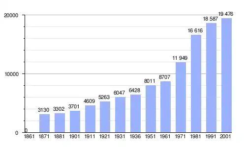 Gráfica de evolución demográfica de Martellago entre 1861 y 2001 |