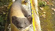 - Esta obra contiene una traducción derivada de «Martes flavigula chrysospila» de Wikipedia en catalán, publicada por sus editores bajo la Licencia de documentación libre de GNU y la Licencia Creative Commons Atribución-CompartirIgual 3.0 Unported.