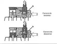 La fuerza del vapor se aplica también en la carrera de descenso, sumándose al efecto de la gravedad.