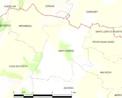 Martisserre es una población y comuna francesa, en la región de Mediodía-Pirineos, departamento de Alto Garona, en el distrito de Saint-Gaudens y cantón de L'Isle-en-Dodon.