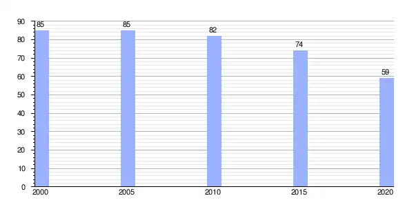 Gráfica de evolución demográfica de Martul (parroquia) entre 2000 y 2020 |