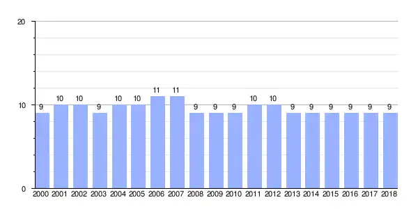Gráfica de evolución demográfica de Martulo entre 2000 y 2018 |