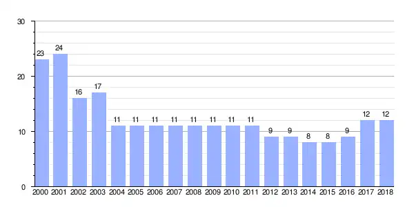 Gráfica de evolución demográfica de Marulo entre 2000 y 2018 |
