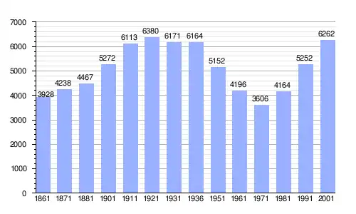 Gráfica de evolución demográfica de Marzabotto entre 1861 y 2001 |