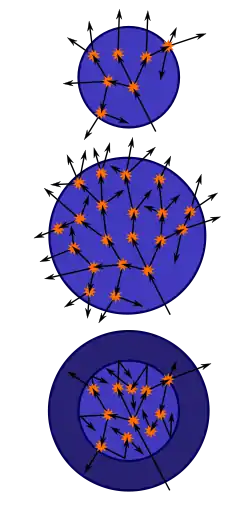 Si se considera la sección eficaz total de interacción (usualmente medida en barn), entonces el camino libre medio de un neutrón pronto se expresa como donde es la densidad de número atómico. La mayoría de las interacciones son choques con cambio de dirección y energía del neutrón, de forma tal que un neutrón recorrerá una trayectoria aleatoria hasta que escape del medio en el que se encuentra o produzca una reacción de fisión. En la medida en que los otros mecanismos de desaparición de neutrones no sean significativos, entonces el radio de la esfera de masa crítica se puede calcular en forma aproximada como el producto del camino libre medio y la raíz cuadrada de uno más la cantidad de eventos de colisión por evento de fisión (lo que llamamos ), dado que la distancia neta recorrida en un recorrido aleatorio es proporcional a la raíz cuadrada de la cantidad de pasos que se dan: