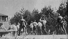 Alrededor del 8 de septiembre, durante la invasión de Polonia que comenzó el 1 de septiembre, el 15.° Regimiento de Infantería Motorizada alemán de la 29.ª División de Infantería Motorizada, 10.° Ejército Alemán, se enfrentó a los remanentes del 74.° Regimiento de Infantería Polaco de Alta Silesia de la 7.° División de Infantería polaca, Ejército de Cracovia, y tomó varios prisioneros de guerra.[1] En ese momento, las fuerzas polacas en la región ya estaban en retirada, con la 7.ª División siendo efectivamente destruida el 3 y 4 de septiembre alrededor de Częstochowa, con su comandante, el general Janusz Gąsiorowski, hecho prisionero.[4] El 74º Regimiento de Infantería estaba al mando del coronel Wacław Wilniewczyc.[5] También se considera que el regimiento sufrió grandes pérdidas durante la batalla de Częstochowa, y algunas fuentes lo reportan como totalmente destruido.[6]
