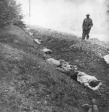 La masacre fue documentada en fotos y memorias de un soldado alemán anónimo, que presenció un enfrentamiento en el que soldados polacos tendieron una emboscada y mataron a más de una docena de soldados alemanes de la 11ª Compañía del 15º Regimiento, incluido el comandante de la compañía, el capitán Lewinsky. Luego se capturó a varios soldados polacos, y el Oberst (Coronel) Walter Wessel, comandante del 15 ° Regimiento de Infantería Motorizada alemán, 29 ° División de Infantería Motorizada, ordenó que les quitaran los uniformes y los declararan partisanos y los llevó a un lugar apartado cerca de la pueblo de Dąbrowa, cerca del pueblo más grande de Ciepielów, donde les dispararon. El autor anónimo de las memorias llegó a ese lugar después de escuchar disparos y contó aproximadamente 300 cuerpos en una zanja al borde de la carretera. Estos documentos fueron recibidos por la Misión Militar Polaca en Berlín Occidental en 1950.[1][11]