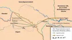 Entre el 14 de julio y el 17 de agosto de 1941, al menos 16 000 judíos fueron deportados por tren hasta la frontera y luego en camión fuera de Hungría. La mayoría de ellos fueron reunidos en Kamianets-Podilski donde los alemanes y la policía local los amontonaban en el barrio judío donde ya había miles de judíos locales. Las condiciones eran pésimas, volviéndose lentamente más lamentables con cada llegada de camiones con deportados. Estaba previsto exterminar a un máximo de judíos desde finales de julio, sobre todo porque Hitler declaraba implícitamente que a partir de ahora, las mujeres y los niños judíos también deben ser masacrados. Sin embargo, la Wehrmacht al principio no sabía qué hacer con tantos judíos.