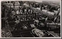 ![]() Víctimas del «Convoy de los 35» siendo llevadas a su entierro. Enero de 1948. | ||