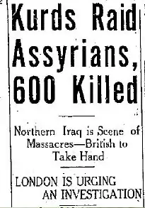 La opinión pública iraquí general, promovida por los periódicos, de que los asirios eran representantes utilizados por los británicos para socavar el reino recién establecido, también fue compartida por algunos altos funcionarios, incluido el primer ministro. Las protestas británicas y europeas que siguieron a la masacre sólo les confirmaron que la "rebelión asiria" fue obra del imperialismo europeo.[60]