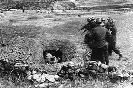 ![]() Ejecución de presos políticos surcoreanos por parte de soldados y policías de Corea del Sur en Daejeon. La fotografía, tomada por el ejército de Estados Unidos, está fechada en julio de 1950. | ||