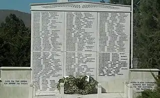 ![]() Monumento funerario construido para recordar a las víctimas de las masacres nazis en Mesovouno. | ||