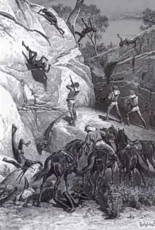 - En un informe tardío (1922) se dice que los colonos del valle de Williams rodearon un campamento de gringai y los obligaron a tirarse por un acantilado.[25] Una banda de supervivientes del mismo grupo fue perseguida y asesinada en el río Bowman. Sin enterrar, sus huesos se pudieron ver allí durante años.[27]