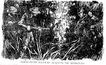 - La masacre de Waterloo Creek, también conocida como la masacre del Día de Australia. Un destacamento de la Policía Montada de Nueva Gales del Sur, enviada por el vicegobernador interino de Nueva Gales del Sur, el coronel Kenneth Snodgrass, atacó un campamento de kamilaroi en un lugar llamado Waterloo Creek, en un bosque remoto.[32] Los informes oficiales hablaban de entre 8 y 50 muertos.[33] El misionero Lancelot Threlkeld fijó el número en 120, como parte de su campaña para obtener apoyo para su misión.[34] Threlkeld afirmó más tarde que el Mayor Nunn se jactó de haber matado de 200 a 300 australianos negros, una declaración respaldada por el historiador Roger Milliss.[35] Otras estimaciones oscilan entre 40 y 70.[36]